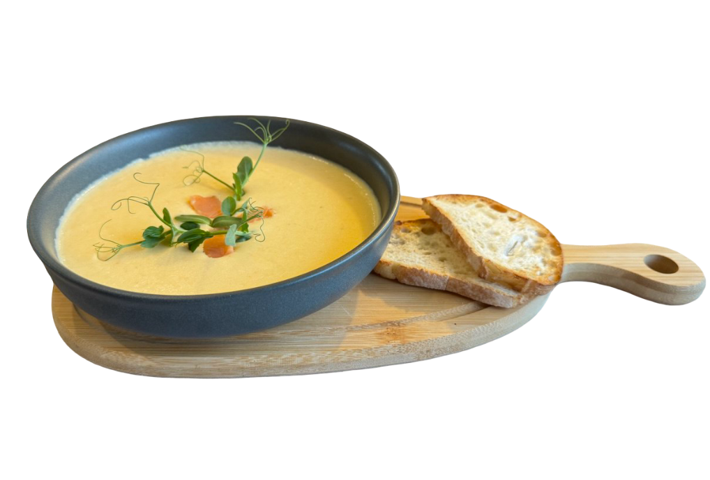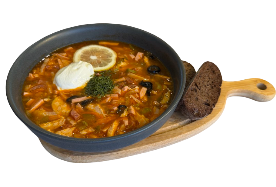 Густая и сытная. По традиционному рецепту русской кухни, сдобренна сметаной. Подается с чиабаттой