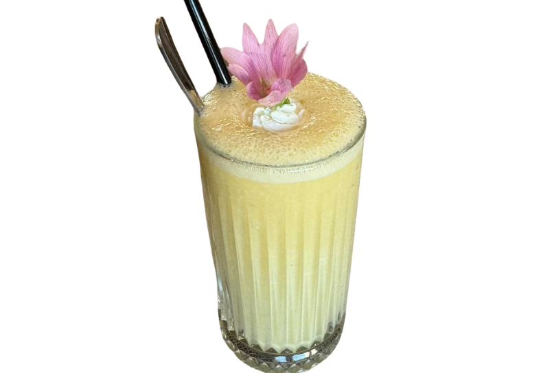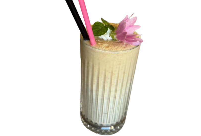 Банан, персик, апельсиновый сок, ананас, манго, сироп